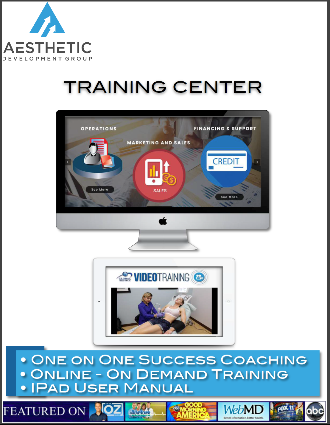 - Our Comprehensive Merchandising Materials That Include The Following: > Full Color Catalogs & Brochures > Before & After Treatment Results Book > Promotional Banner > Lobby & iPad Promotional Videos > Custom Website & URL > ADG Comprehensive A to Z Training & Support Systems > ADG Online - Form / Document Library with Training Protocols & Training Videos Let Us Make It Easy For You. We Handle The Details For You! Call Us Today.